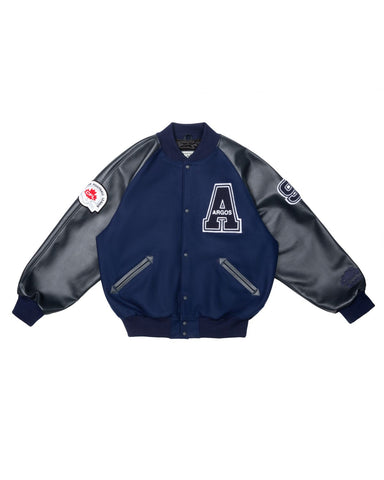 The jacket’s color scheme is a striking combination of royal blue, black, white, and red, reflecting the energy of Carter’s prime era with the Raptors. A Toronto skyline silhouette runs along the lower portion, emphasizing the deep connection between Carter and the city that embraced him. The “We The North” slogan is embroidered on both sides, symbolizing the Raptors’ lasting impact on basketball culture.