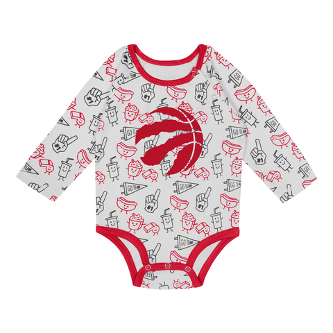 Raptors Infant Little Champ 3pc Creeper Pant Set Set includes long sleeve bodysuit, pants and cuffed knit hat with ears Bodysuit with three-snap closure on left shoulder, three-snap closure at...