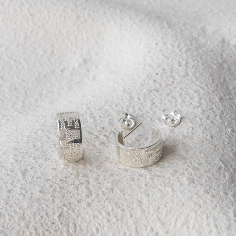 Maple Leaf Pave Cigar Band Hoop Earring - SILVER