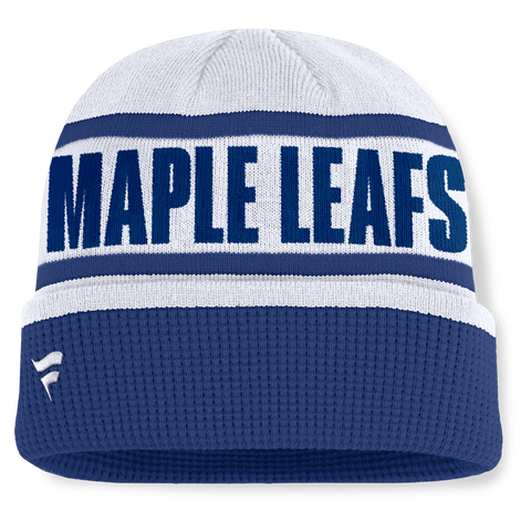 Maple Leafs Fanatics Men's Switchback Cuffed Knit Toque One size fits most Embroidered team logo Jacquard team name around crown Material: 100% Acrylic Hand wash, dry flat Cuffed knit hat...