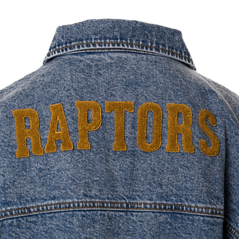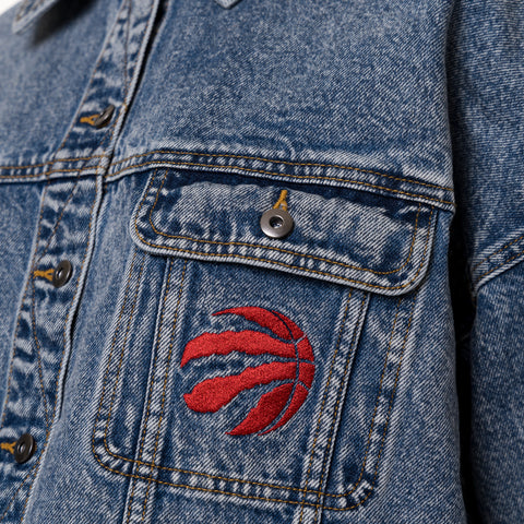 Raptors GIII Women's Victory Denim Jacket Oversized fit Cropped hem Two chest pockets with button closure Embroidered graphics with raised details Felt applique on the back Material: 100% Cotton Long...